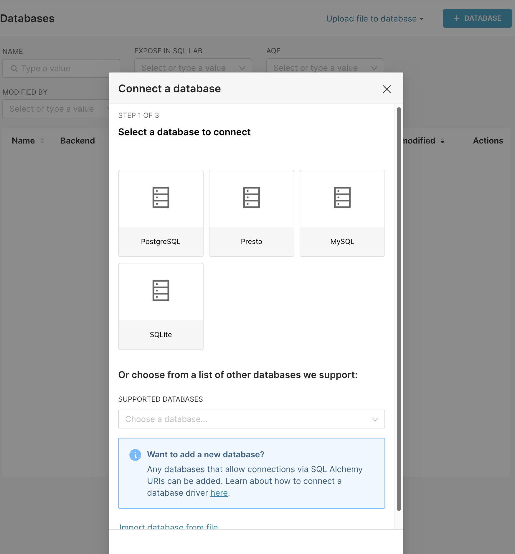 Under Supported Databases select Other.